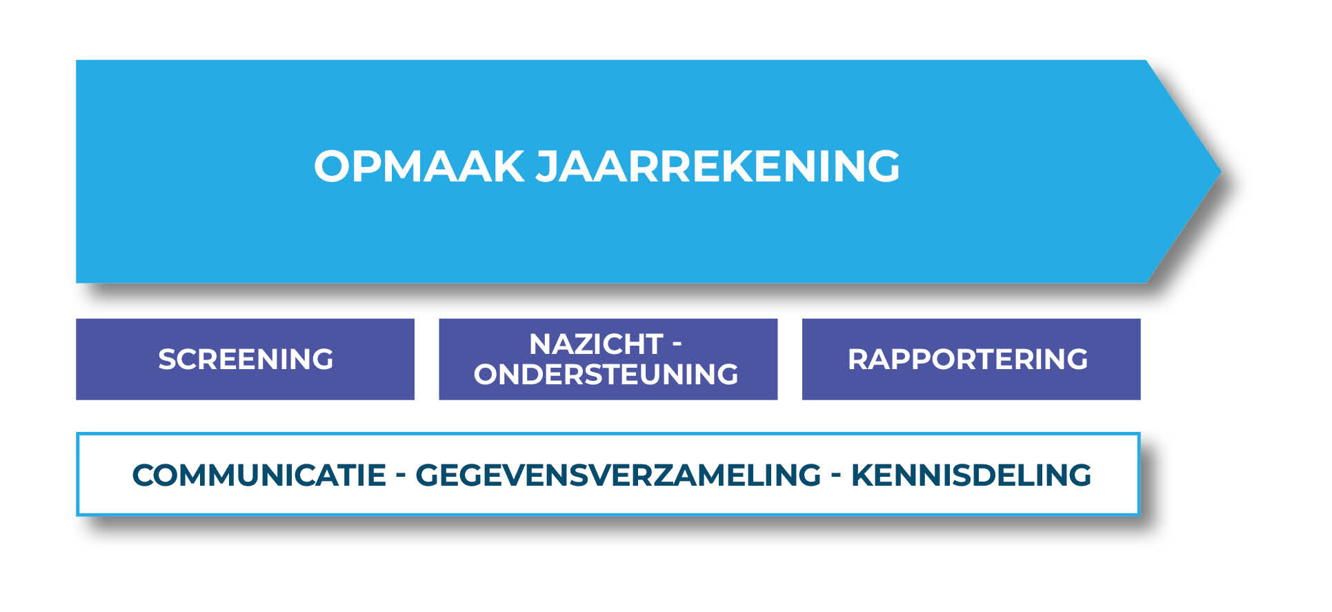 Wij benaderen het afsluitproces als een samenwerking, op een laagdrempelige en toegankelijke manier. Onze werkwijze is pragmatisch, met een intensieve betrokkenheid van de medewerkers van de (financiële) dienst. Dit zorgt niet alleen voor transparante communicatie, maar ook voor kennisdeling en opleiding. Onze doorgedreven kennis van verschillende softwarepakketten vormt hierbij een belangrijke meerwaarde.