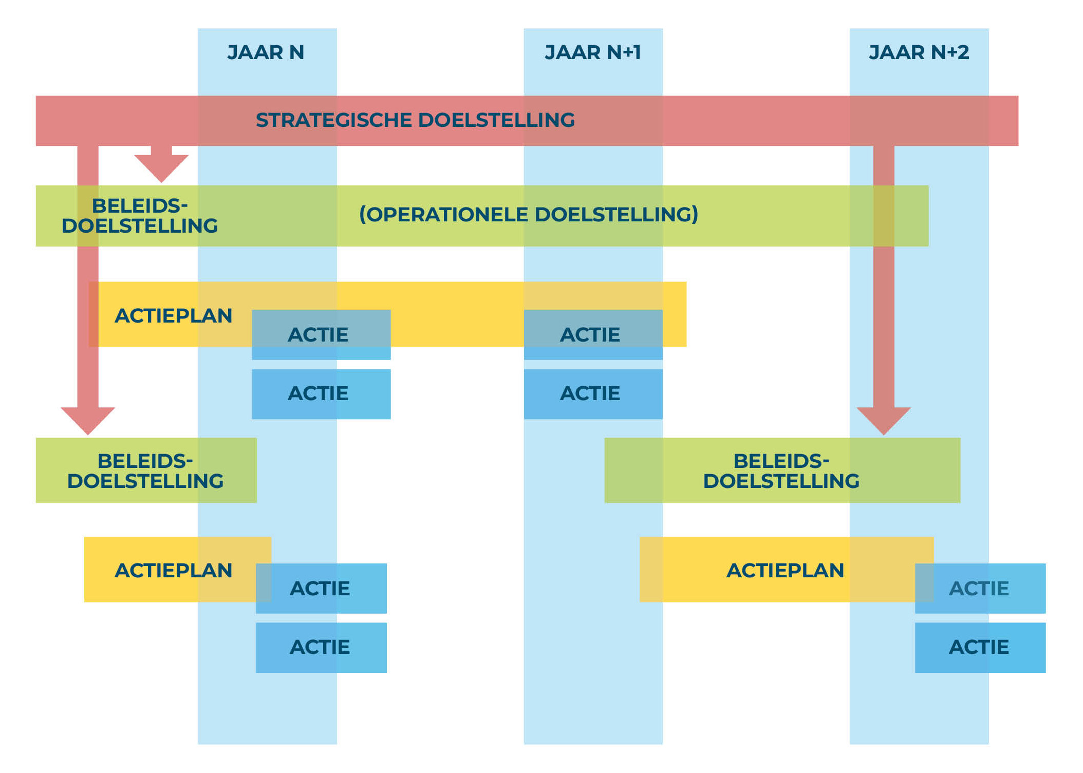Het voeren van een planmatig beleid houdt in dat aan het begin van de beleidscyclus een planning wordt opgesteld voor de volledige duur ervan. Alle lokale en provinciale besturen maken na de lokale verkiezingen dan ook werk van de opmaak en vaststelling van hun meerjarenplan voor een periode van zes jaar. Dat meerjarenplan is gekoppeld aan de gemeentelijke en provinciale bestuursperiode, maar de periode die het bestrijkt valt hier niet volledig mee samen. Het plan is namelijk voor één jaar legislatuuroverschrijdend, vanuit de gedachte dat een nieuwe beleidsploeg onmogelijk al tijdens het eerste jaar van haar eigen legislatuur een nieuw meerjarenplan kan opstellen.